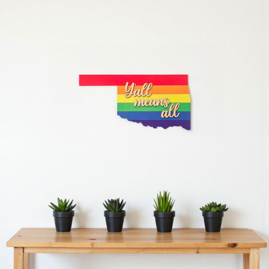 Y’all Means All Oklahoma Rainbow Wooden Wall Art