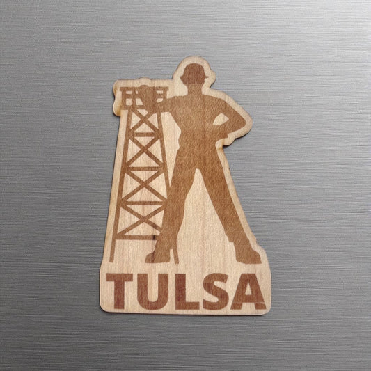Wooden Tulsa Skyline Glasses Ornament | Oklahoma Holiday Decoration