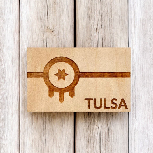 Downtown Tulsa Night Skyline Wood Photo Magnet