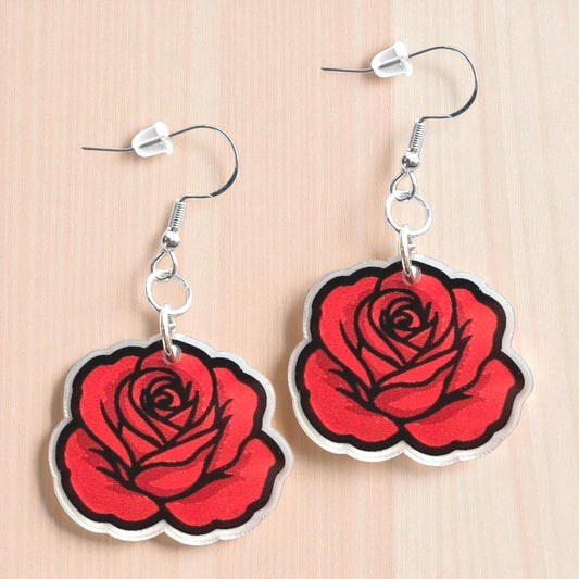 Oklahoma Red Rose Color Acrylic Earrings