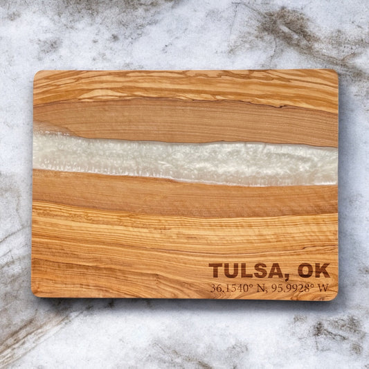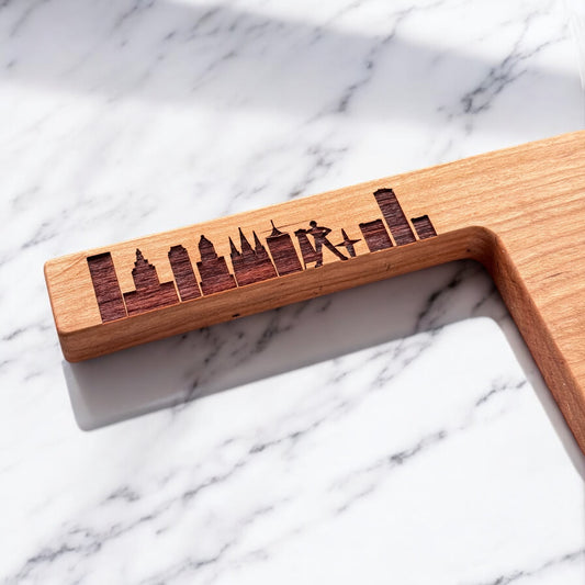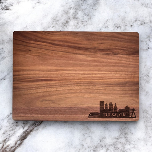 Oklahoma Cherry Wood Charcuterie Board Tulsa Skyline