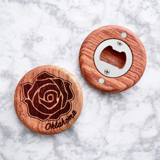 Oklahoma Rose Wood Magnetic Bottle Opener