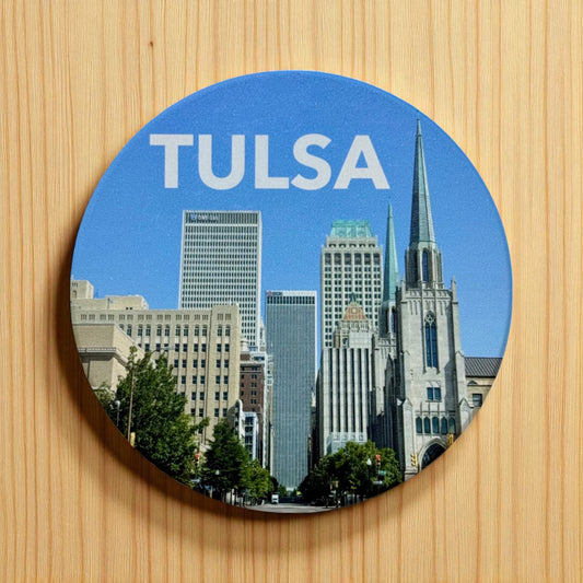 Tulsa Skyline Photo Ceramic Coaster with Boston Avenue View
