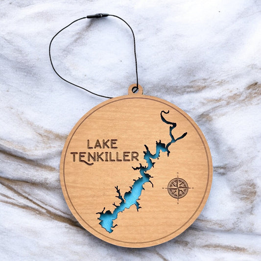 Lake of the Arbuckles Ornament | Layered Wood Lake Map Ornament | Oklahoma Souvenir Gift