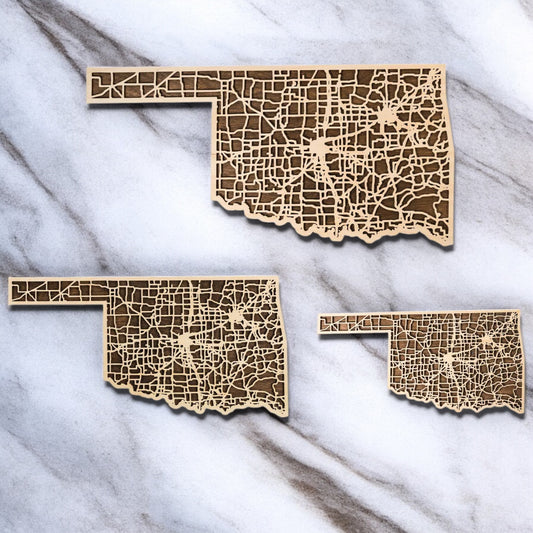 Oklahoma City 3D Wooden Map – Layered City Street Wall Art, Handcrafted OKC Gift, Rustic Home Decor