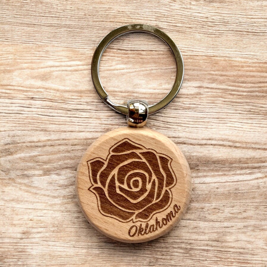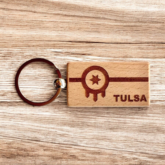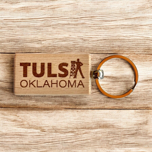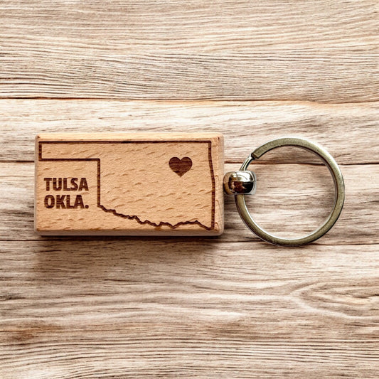 Tulsa Oklahoma Wooden Keychain State Map with Heart