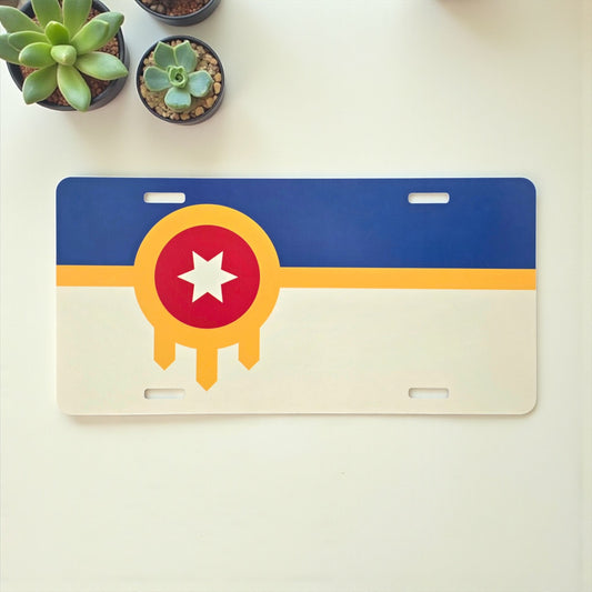 Tulsa Flag Vanity Plate | Oklahoma License Plate | Route 66 Souvenir | Tulsa Gift