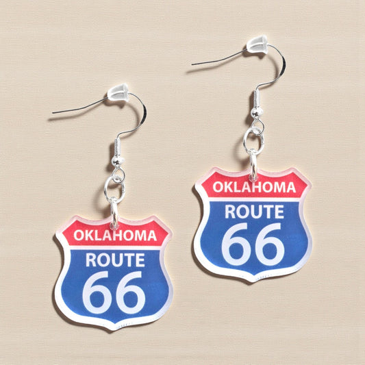 Oklahoma Route 66 Acrylic Earrings Centennial