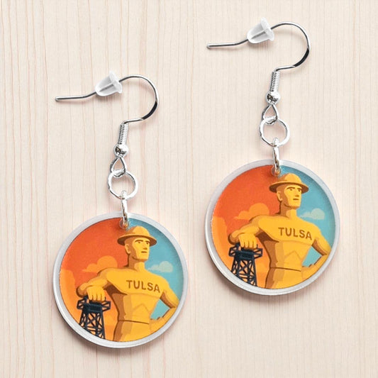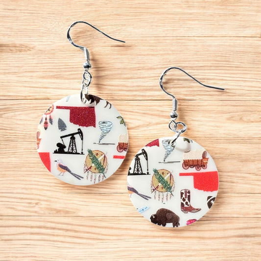 Red Oklahoma Heart Acrylic Earrings State Pattern