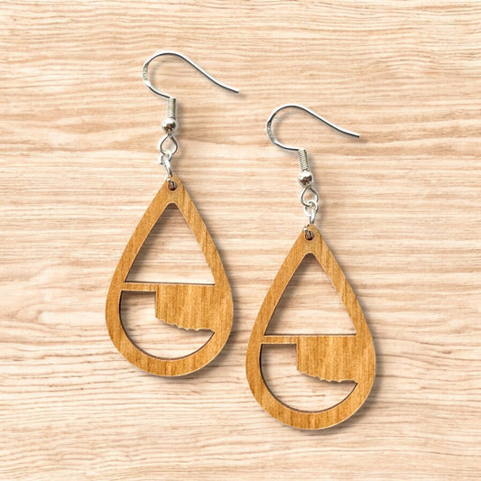Oklahoma Wooden Teardrop Earrings State Cutout Sterling Silver