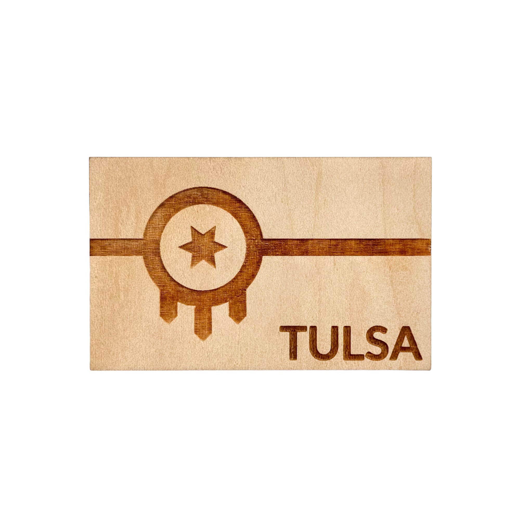 Show off your Tulsa pride with this quirky magnet featuring the Tulsa Flag. Made with all-natural wood, this magnet is both eco-friendly and locally sourced. Perfect for adorning your fridge or any magnetic surface. (Note: may attract other Tulsa enthusiasts!)