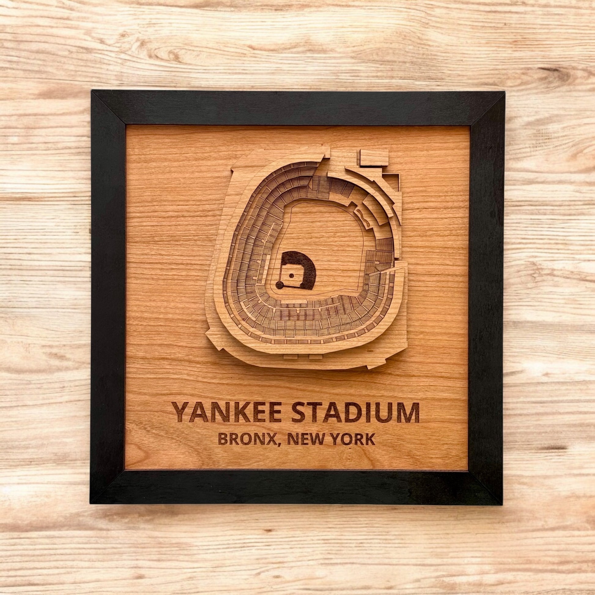 This one-of-a-kind replica of Yankee Stadium in the Bronx, New York is the perfect gift for the baseball fan in your life. Crafted from five layers of 1/8" wood and designed to include all of the details that matter. Custom-made black frame.